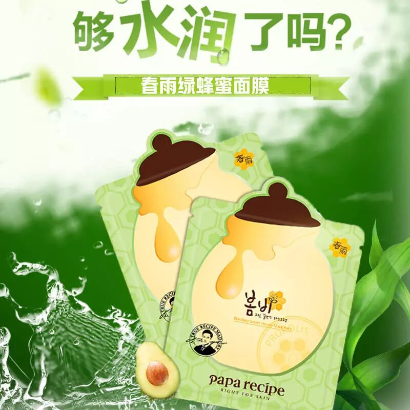 「孕妈妈可用 补水去黄」韩国papa recipe春雨面膜新品女绿色蜂蜜罐牛油果补水