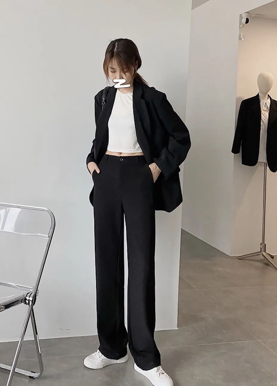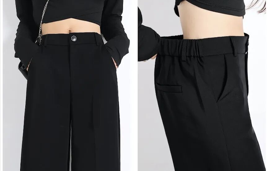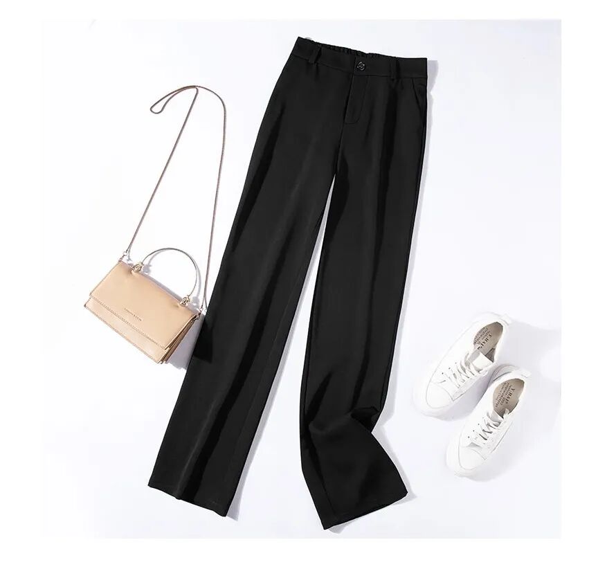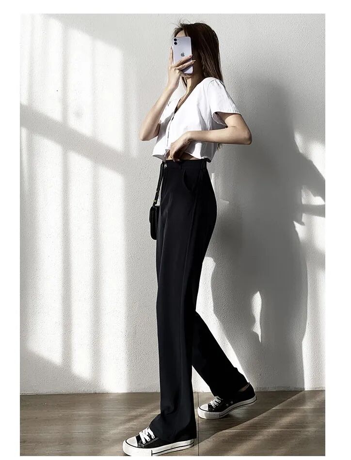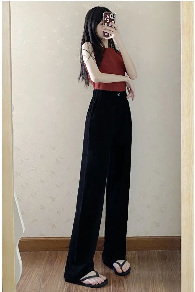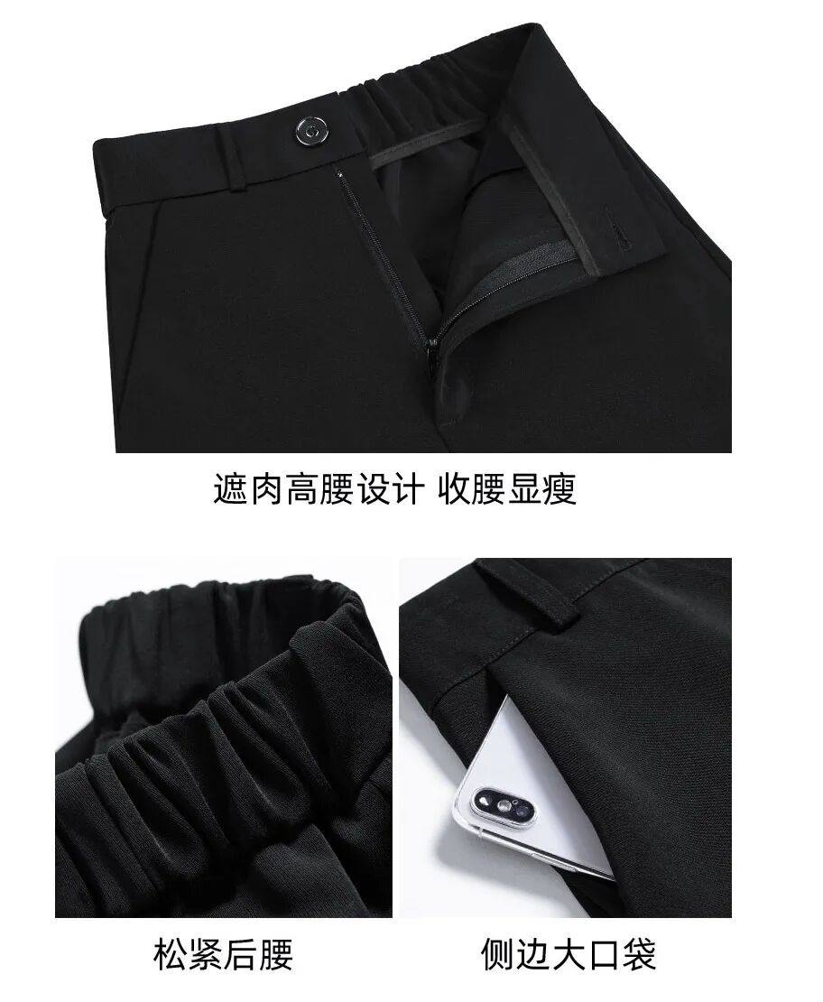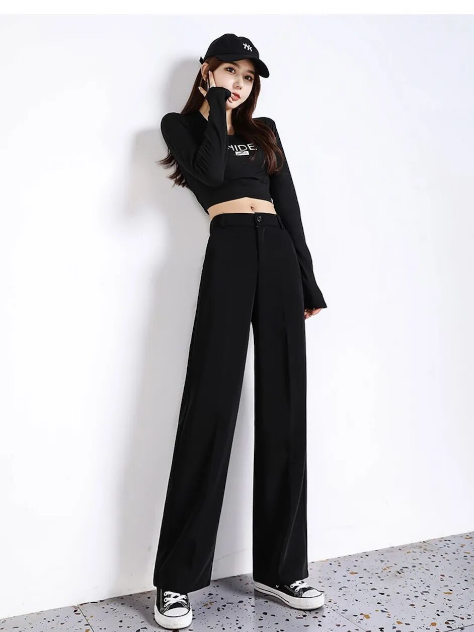 欧可纪薄款高腰垂感宽松拖地西装裤