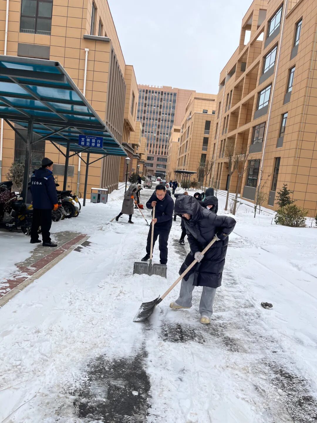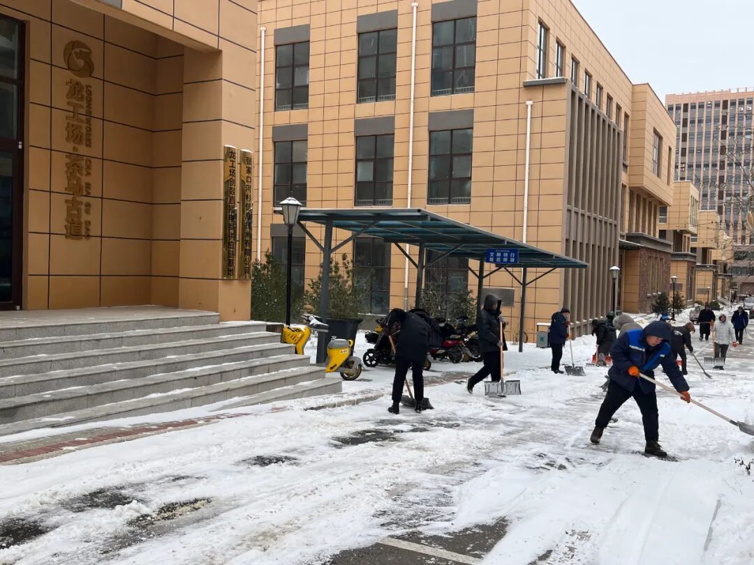 面对厚厚的积雪,同事们有序领取雪铲、扫帚等除雪工具,积极投入到扫雪行动中,大家齐心协力,积极踊跃、分工合作,扫的扫,铲的铲,堆的堆,配合默契,一个个忙碌的身影活跃在扫雪现场。经过大家1个多小时的辛勤付出,积雪清理成效明显,园区道路及公共区域等重点区域的积雪冰层得到清理。此次活动不仅为大众出行带来便利,也展现了张家口龙工场的良好精神风貌。