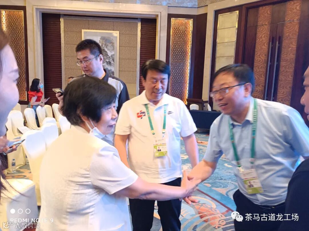 中国国际投资促进会常务副会长姚文萍在海口首届消博会电商研讨会现场与马占祥主任,赵福平局长亲切交谈。
