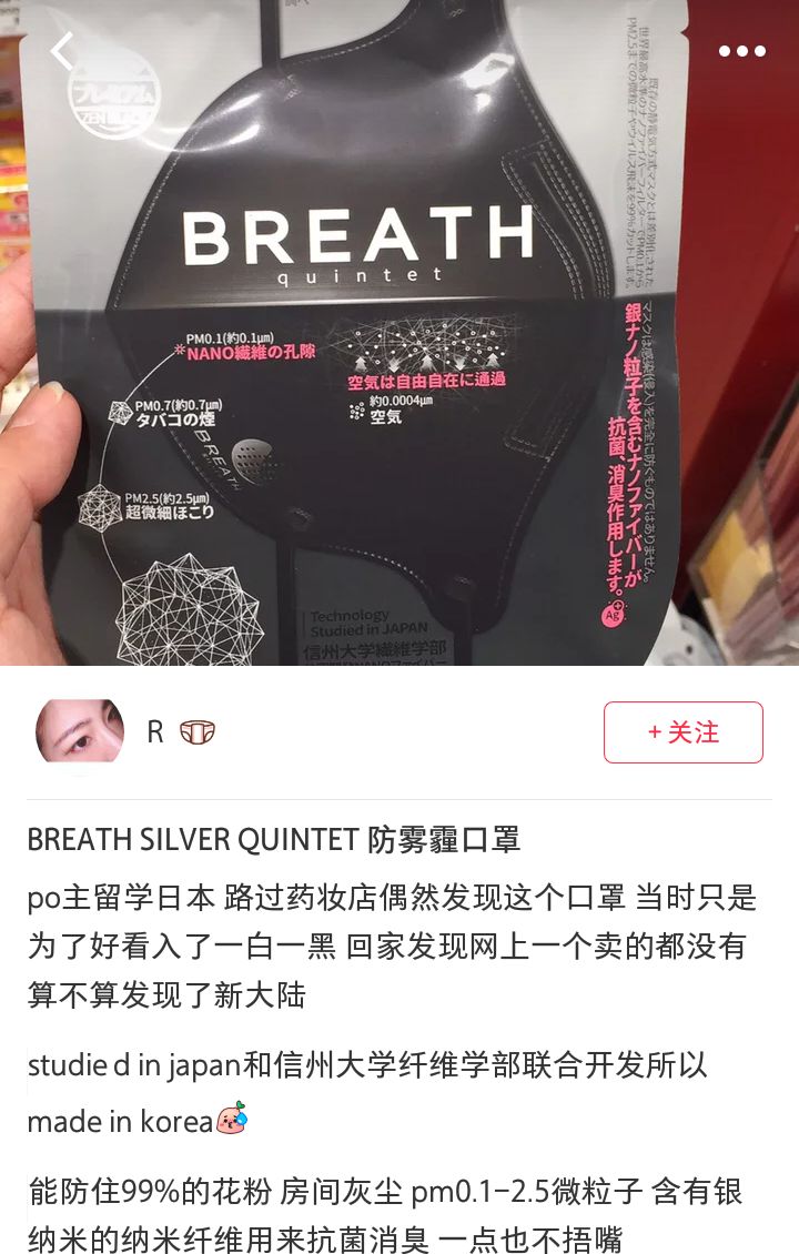 小编告诉你这款BREATH口罩不光阻隔有害物质非常棒,还具有非常优秀的透气性哦。