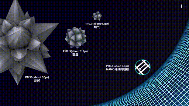 这么,这么细的纳米空隙,不要说花粉、烟尘、飞沫、PM2.5,就连细菌病毒也不再话下。