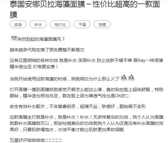 还记得去年娜扎带火的那款防晒,最后在网上被炒到价格很高,而且还断货,而这么好用的海藻面膜今年风刮的很大,也有变网红面膜的趋势,所以趁着这次团购超低价,各位小仙女们多囤几盒是没错的。