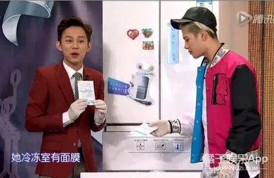 在《拜托了冰箱》的综艺里,何炅就曾在昆凌家冰箱的冷冻室里,找到了一大摞面膜……