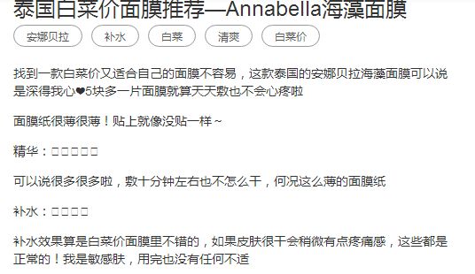 今天环环给大家安利一款超补水的面膜——泰国安娜贝拉Annabella海藻面膜