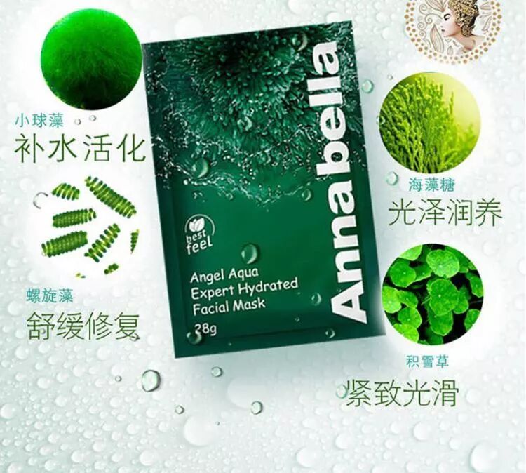 安娜贝拉海藻面膜的主要成分是海藻,因为海藻提取活性成分,高于一般补水产品的海洋矿物质渗透性,可以有效促进肌底的水平衡和吸收能力,直达肌肤内层,让每一个肌层的肌肤都丰盈水润。
