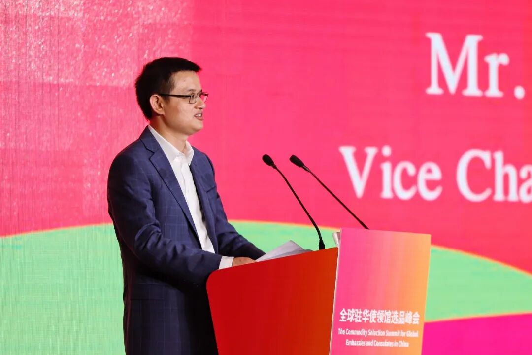 大龙网集团副董事长曾建文在全球驻华使领馆选品峰会上。向诗佳摄