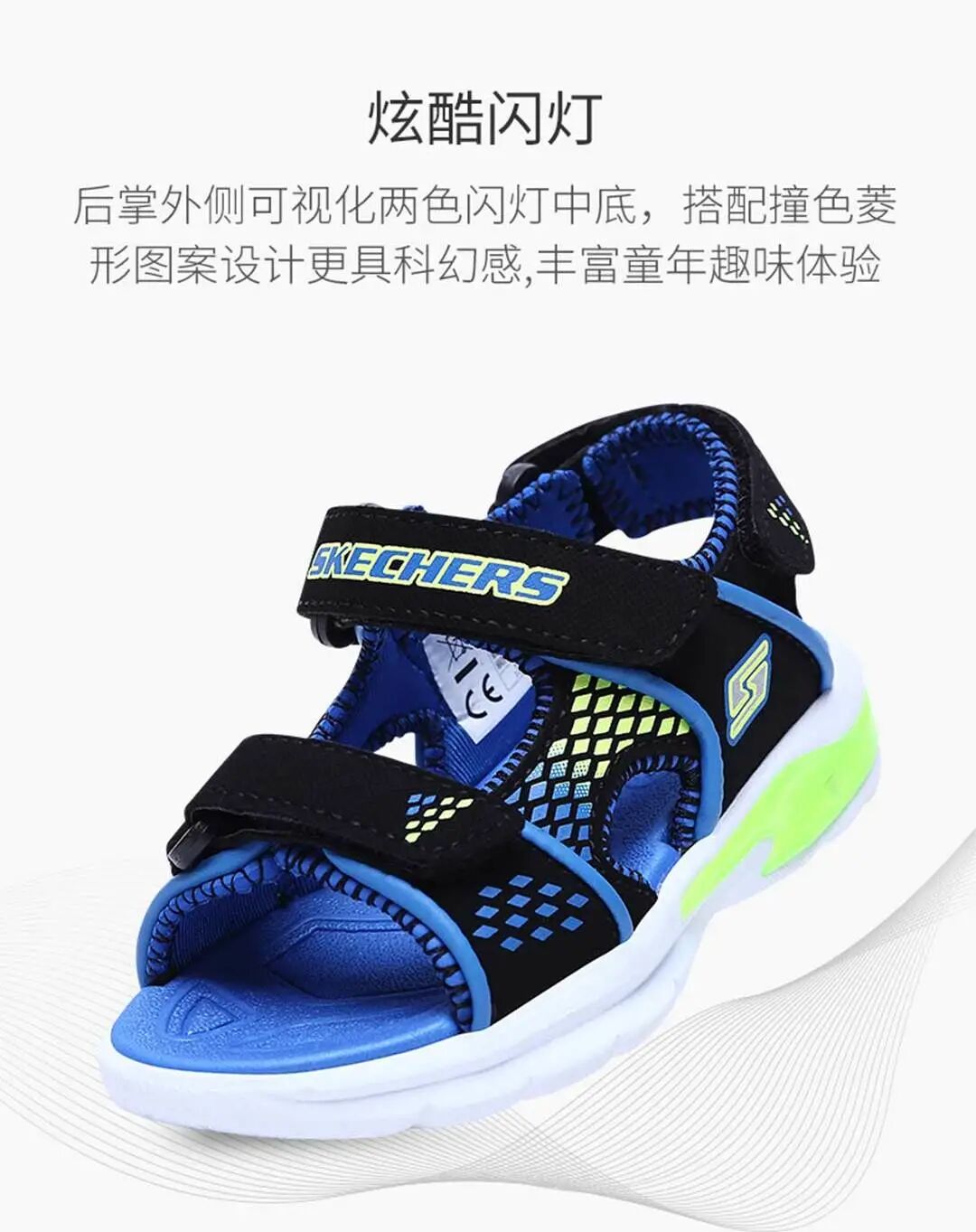 Skechers 斯凯奇男童闪灯魔术贴凉鞋90558N