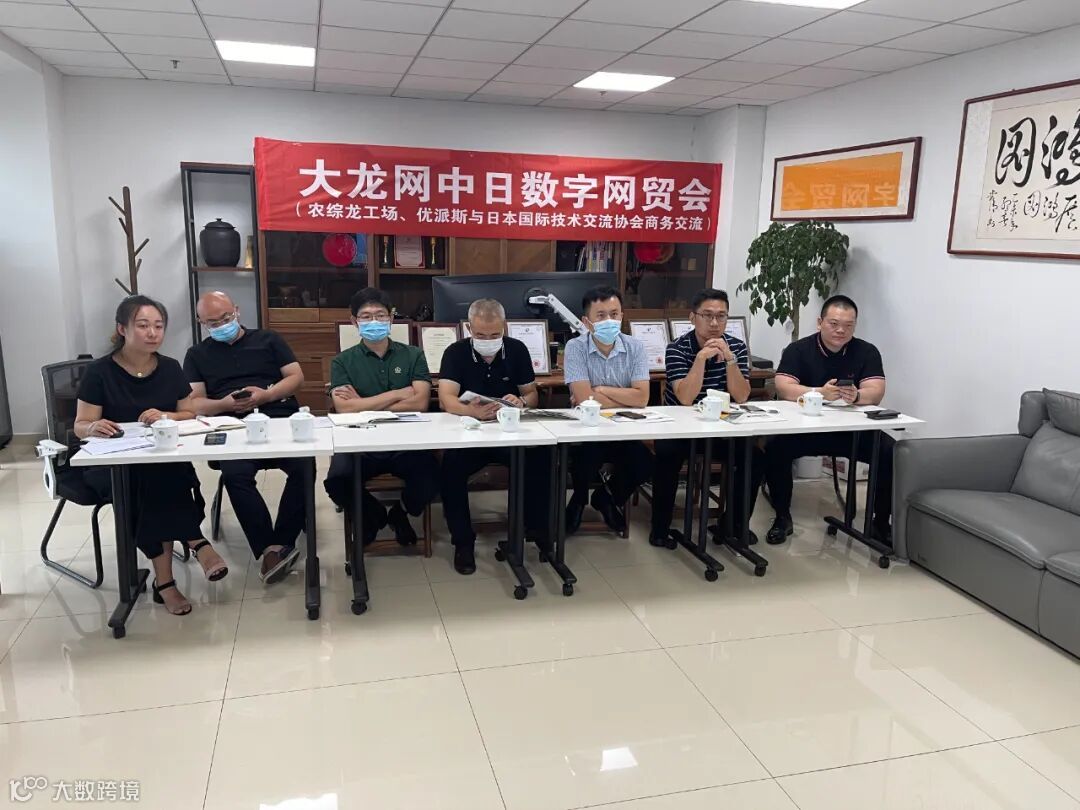 2022年7月26日,大龙网集团旗下农综龙工场顺利举办主题为“日本渠道商—潍坊经济开发区数字贸易洽谈会”,潍坊经济开发区商务局、潍坊经济开发区农研中心、潍坊经济开发区城投集团、潍坊经济开发区跨境电商公司、日本渠道商小室熙美、古川悦光、村井順俊、出雲健太,以及潍坊经济开发区本土企业参加了本次数字贸易洽谈会。此次数字贸易对接会的成功召开是大龙网集团落地“两国双园”的重要行动,成功帮助当地企业打开了通往日本市场的新通道。
