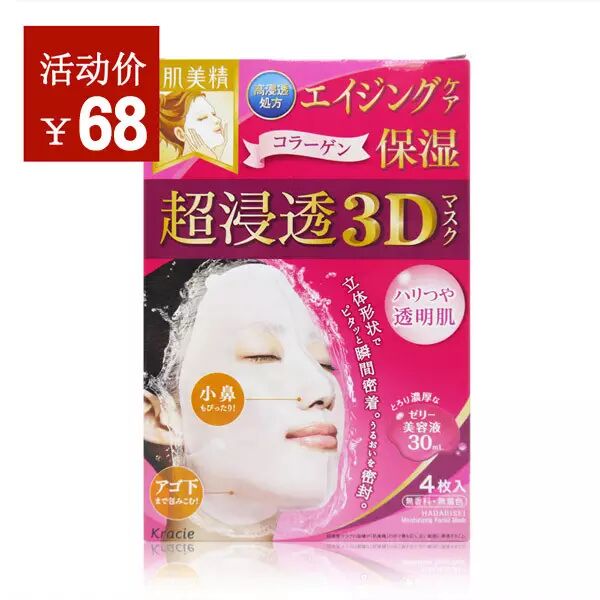 日本Kracie嘉娜宝 3D肌美精面膜 粉色 4片