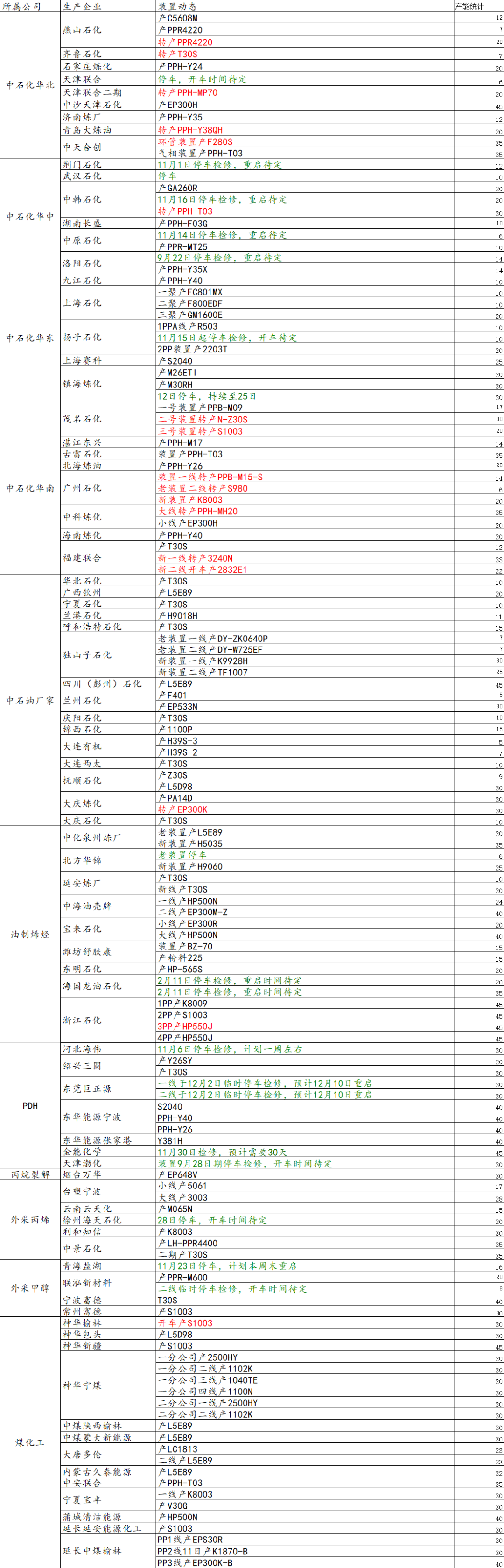 导读:12月02日国内装置动态