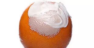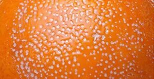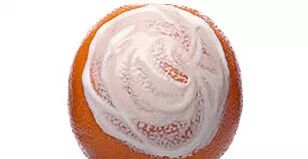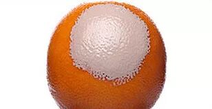 橙子皮表面和人的皮肤有很多相似之处,我们在它的表面涂上一层BB霜: