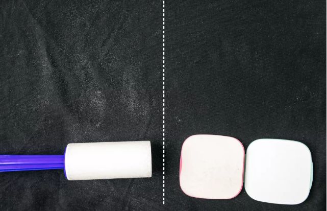 还有秋冬的黑裤子,女生的打底裤,最容易粘一些白色的绒毛,也特别招人烦~