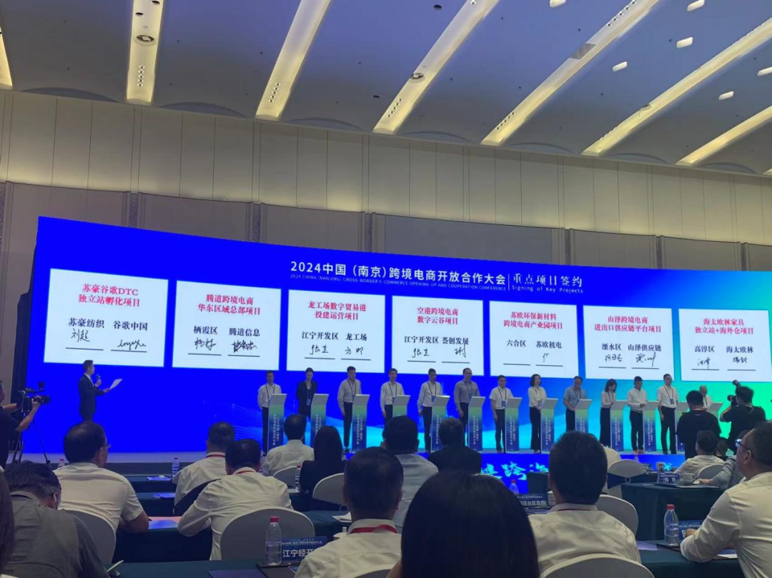 据了解,本次大会旨在共同探索跨境电商新机遇,推动南京及全国跨境电商产业的蓬勃发展。会议发布了江苏省首个跨境电商全场景业务服务软件、跨境电商数据集成展示与应用中心和跨境电商数据集成展示与应用中心。同时,会议还启动了南京都市圈+跨境电商产业带“扬帆”行动、江苏高校“丝路电商”领航人才计划,并在现场进行了多项重大项目签约,其中江宁开发区人民政府与南京龙工场负责人签署了龙工场数字贸易港投建运营项目的战略合作协议,为后续江宁区跨境电商的持续发展奠定了坚实的基础。