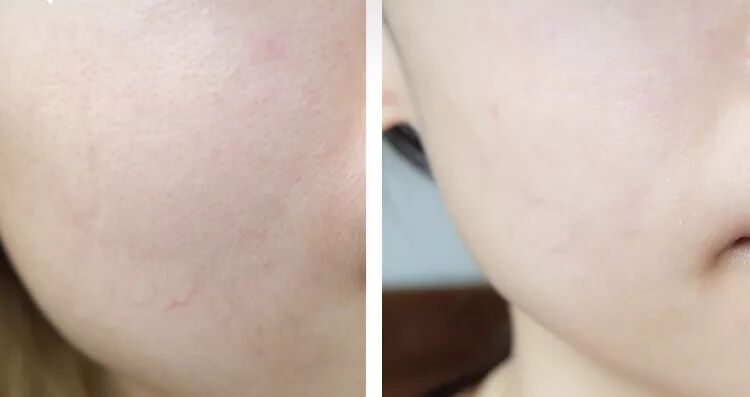 ▼左边皮肤光滑透亮,泛着光,右边却是假白像面具。