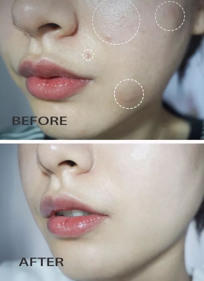 局部一些位置的暗沉,如嘴角、鼻翼、黑眼圈,以及一些斑点疤痕,也能逐渐淡化,逐步让整体肤色均匀亮白。