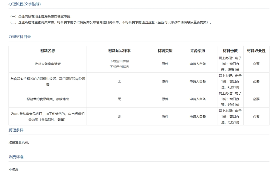 注:食品进口商办理备案时,应当对其提供资料的真实性、有效性负责。
