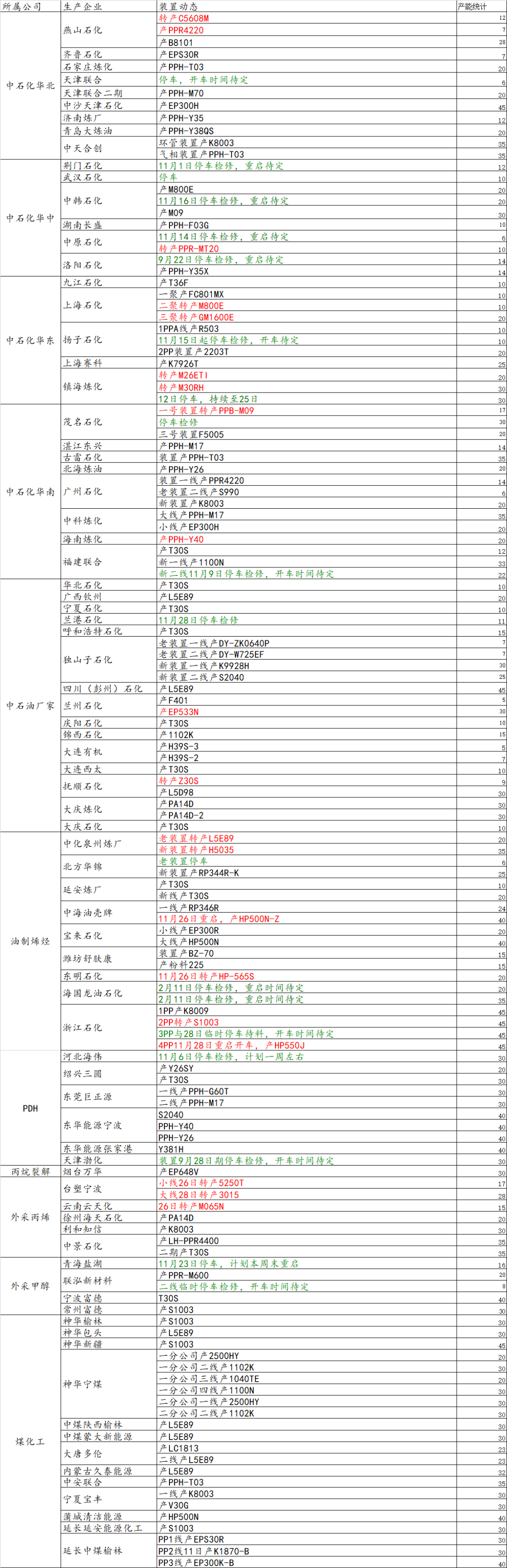 导读:11月28日国内装置动态