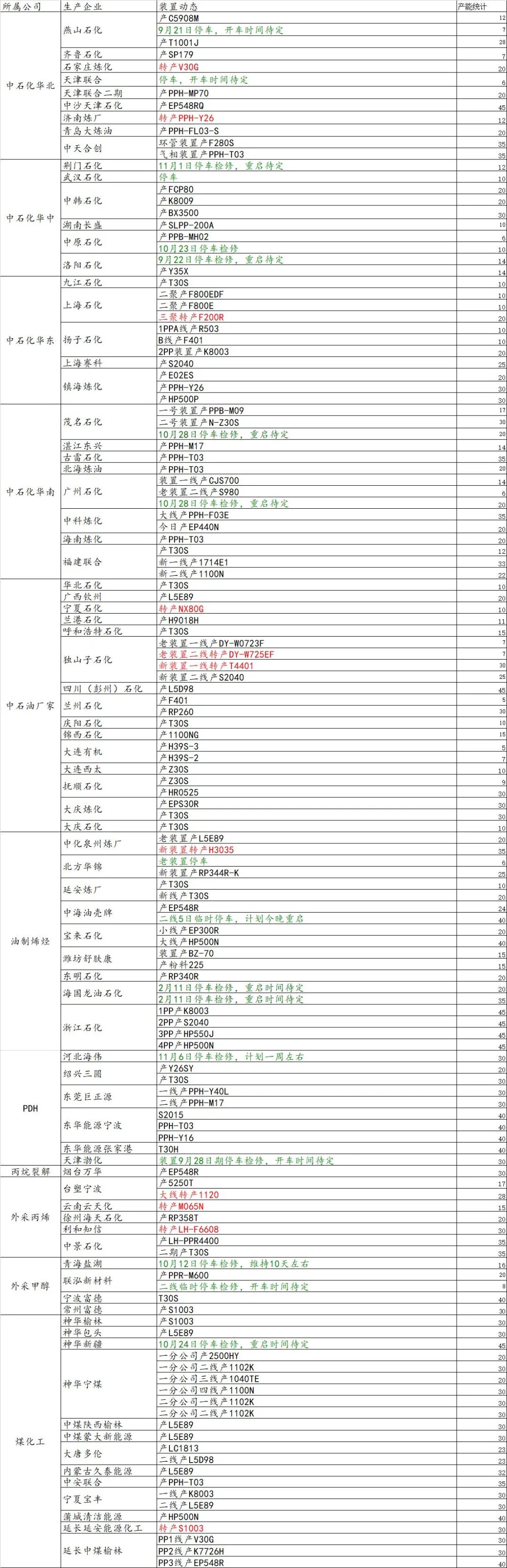 导读:11月08日国内装置动态