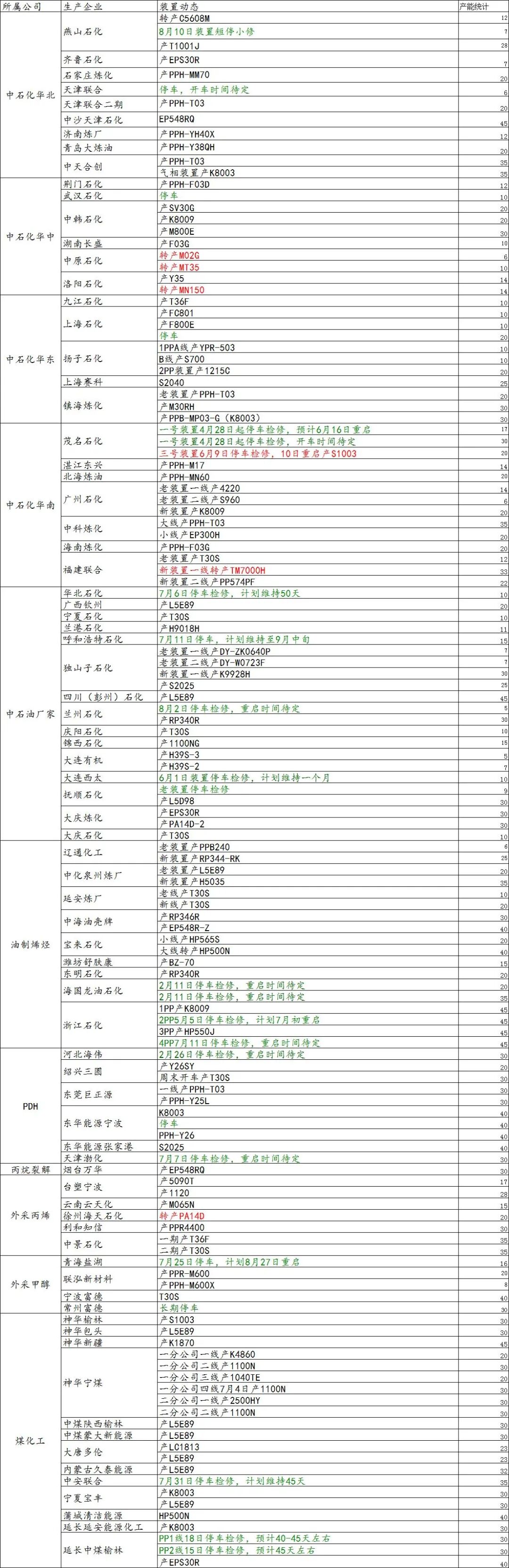 导读:8月10日国内装置动态