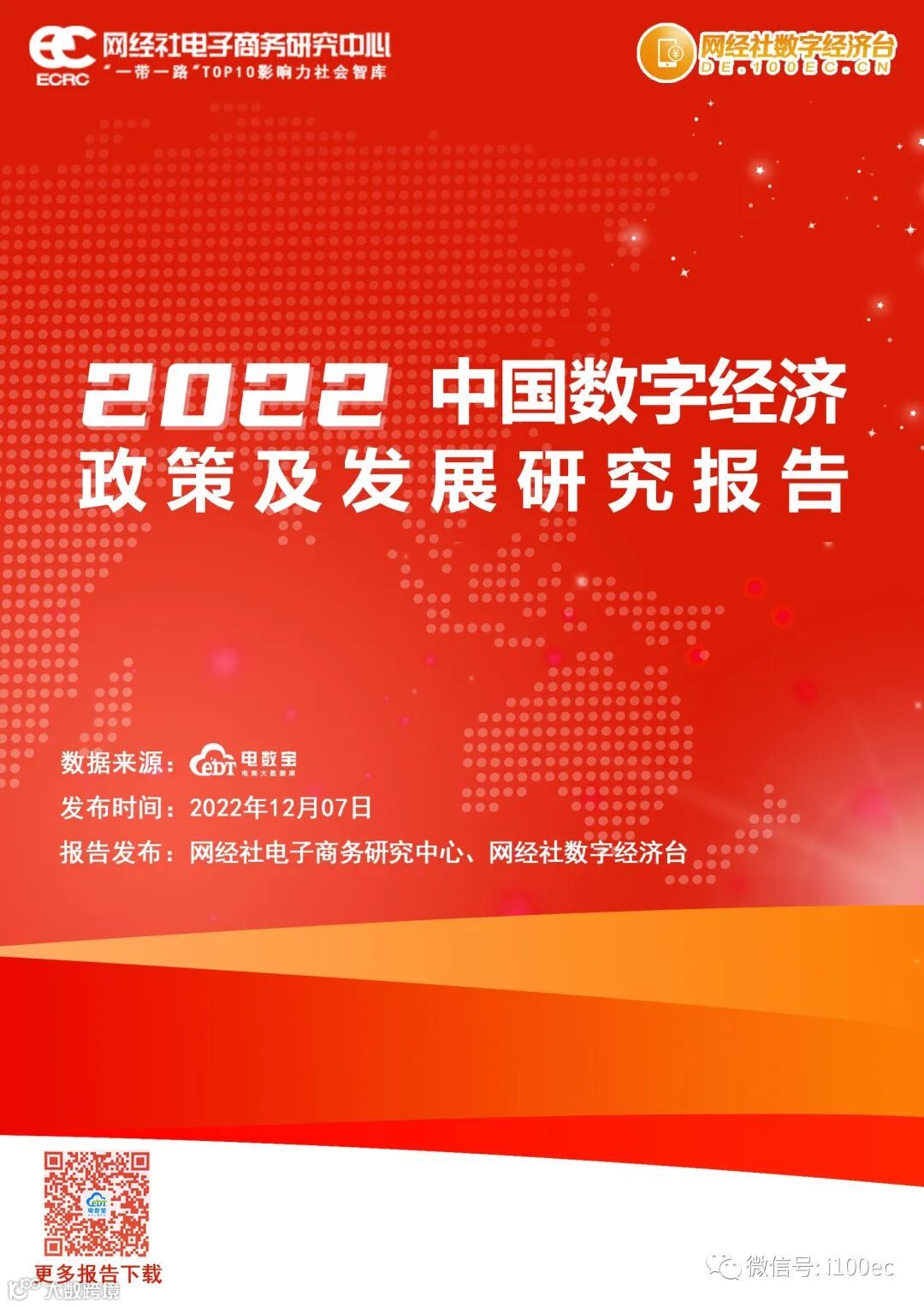 12月7日,“一带一路”TOP10影响力社会智库网经社电子商务研究中心发布《2022中国数字经济政策及发展研究报告》(报告下载:https://www.100ec.cn/zt/22szjjbg/)。据网经社“电数宝”(DATA.100EC.CN)电商大数据库预测,2022年我国数字经济规模将达50.2万亿元,同比增长10.32%,报告对全国及各省市数字经济相关政府进行盘点。