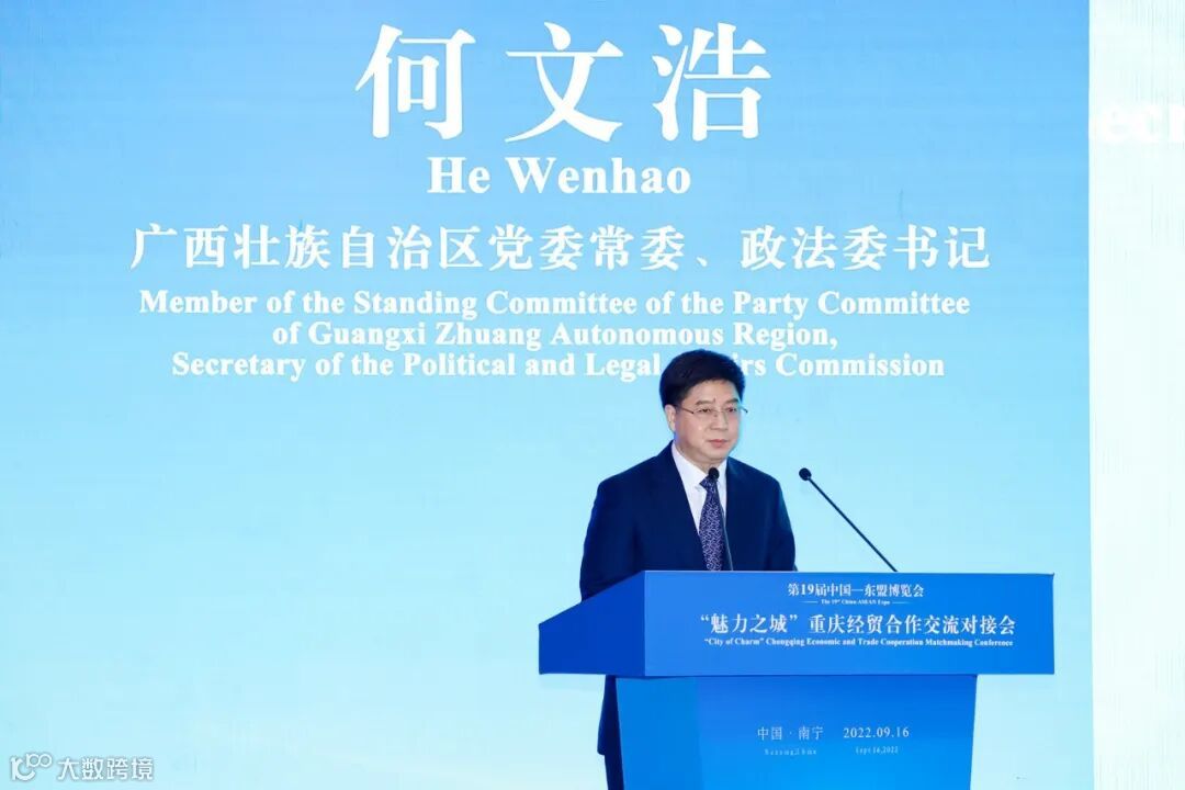 广西壮族自治区党委常委、政法委书记何文浩致辞