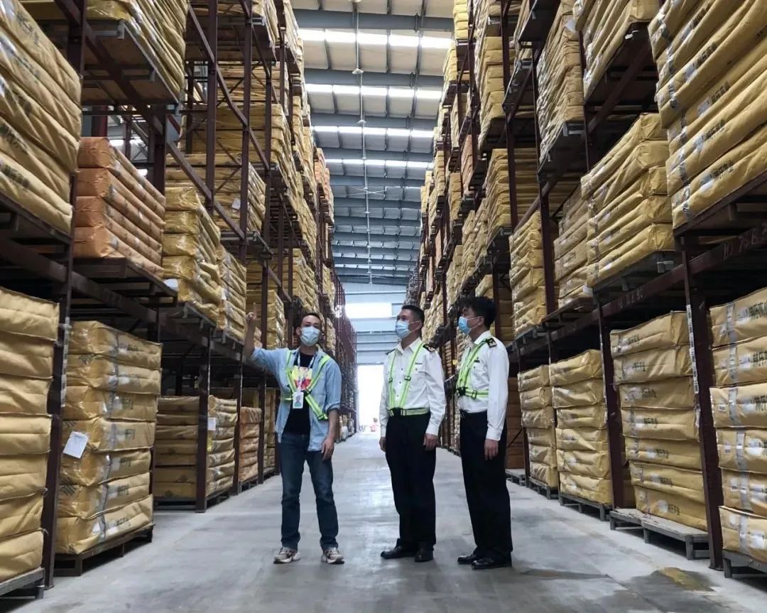 海关关员在跨境电商企业仓库现场巡查