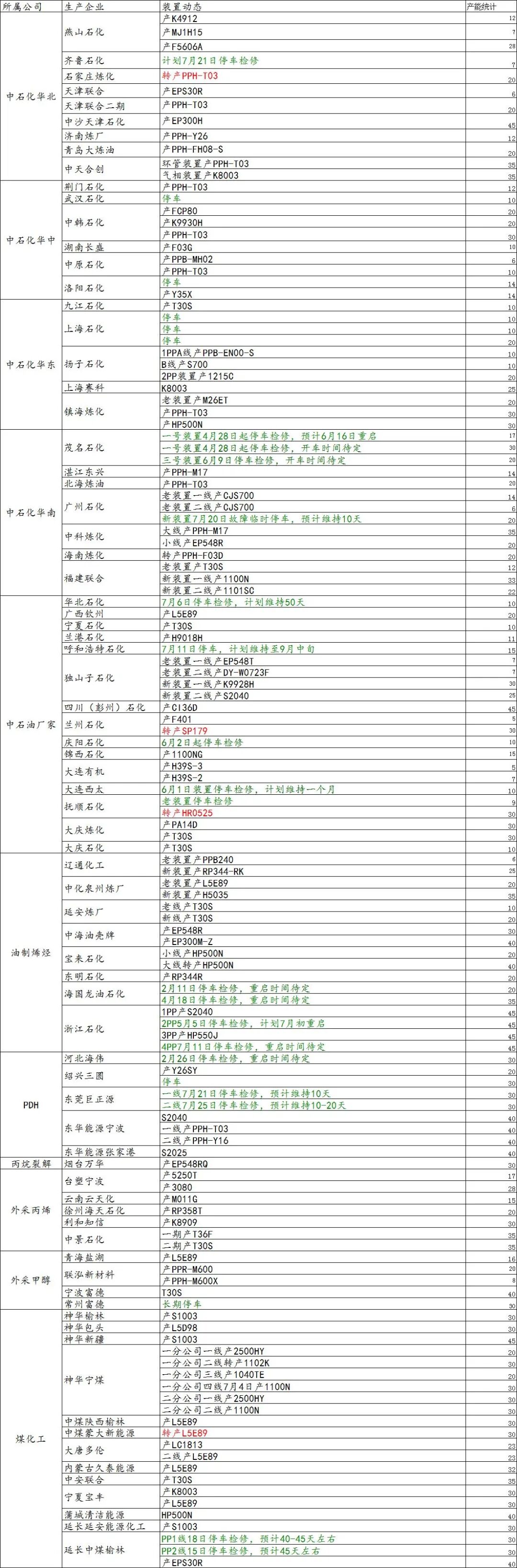导读:7月27日国内装置动态