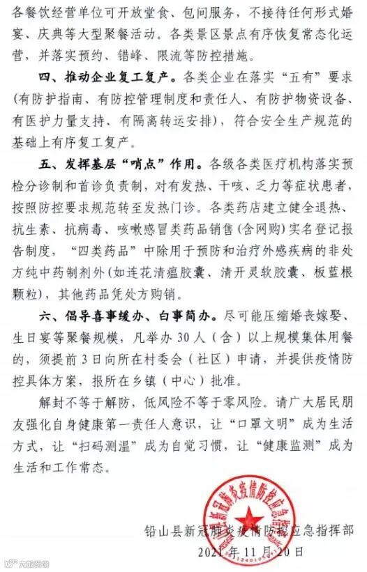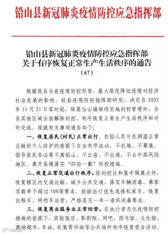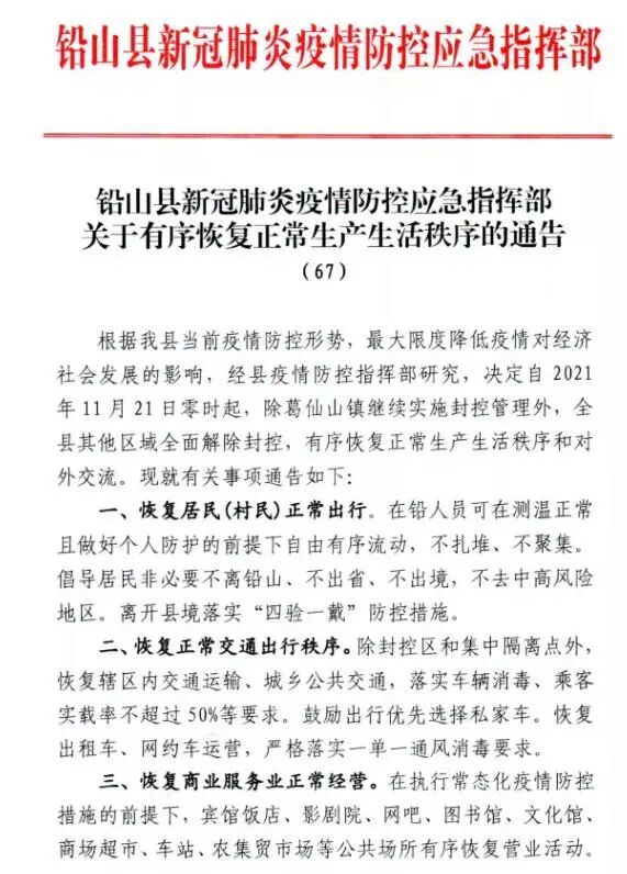 关于有序恢复正常生产生活秩序的通告一经发出,广大铅山同胞们也是第一时间发出欢欣雀跃之情,但解封不等于解防,低风险不等于零风险,让“口罩文明”成为生活方式;让“扫码测温”成为自觉习惯;让“健康监测”成为生活和工作常态。这是我们必须谨记在心的准则,也是感恩在过去21天默默付出“战斗者”的艰辛成果,疫情后的铅山必定更美,我们也定不辜负这份“厚爱”!