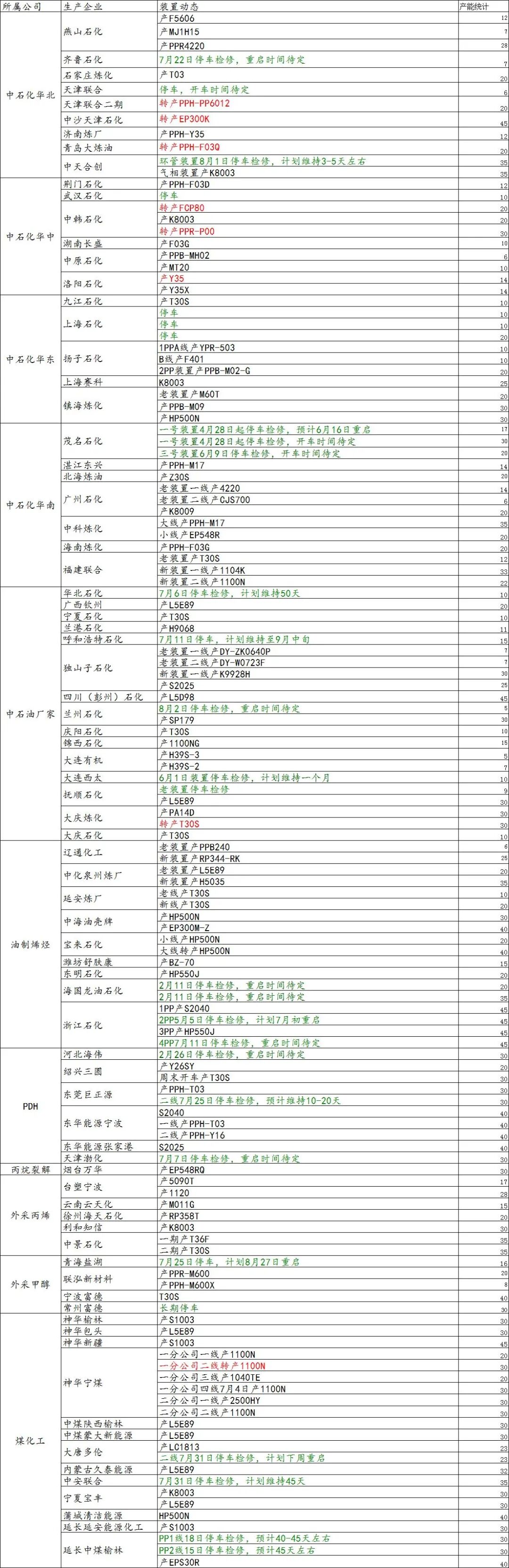 导读:8月1日国内装置动态
