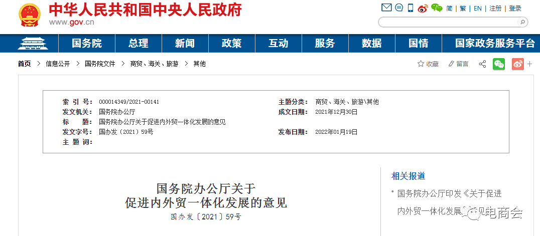 导读:近日,国务院办公厅印发《关于促进内外贸一体化发展的意见》(简称《意见》),就促进内外贸一体化,形成强大国内市