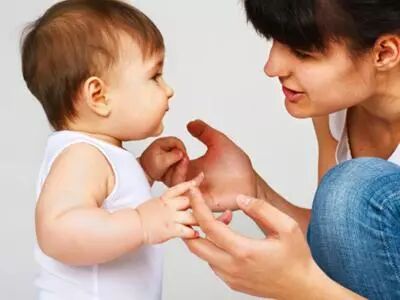 小宝出生后,就进入到了发音的初始阶段—哭。辣妈们都有经验,从小宝的哭声中就可以初步判断:是饿了、尿了还是不舒服了。这就是最初的语言。2个月左右小宝可以发出“啊、咿、呜”等喉音;4个月能笑出声;7~8个月能发“爸爸、妈妈”等语音,但是无意识的。而在这些无意识的发音过程中,环境条件的反馈使小宝逐渐理解语言,小宝通过视觉、触觉、听觉和位置的改变,把它们联系在一起,逐步开始理解简单的词。比如:最常接触到的“奶瓶”,妈妈在每次喂奶之前都会摇晃奶瓶,同时发出:“奶瓶、奶瓶”这样的声音,小宝的嗅觉就会闻到熟悉的奶香,味觉同时报告相同的味道,小手摸到了温热的瓶子,这些都帮助小宝理解“奶瓶”这个发音的特定含义。此时就逐渐进入理解语言阶段。