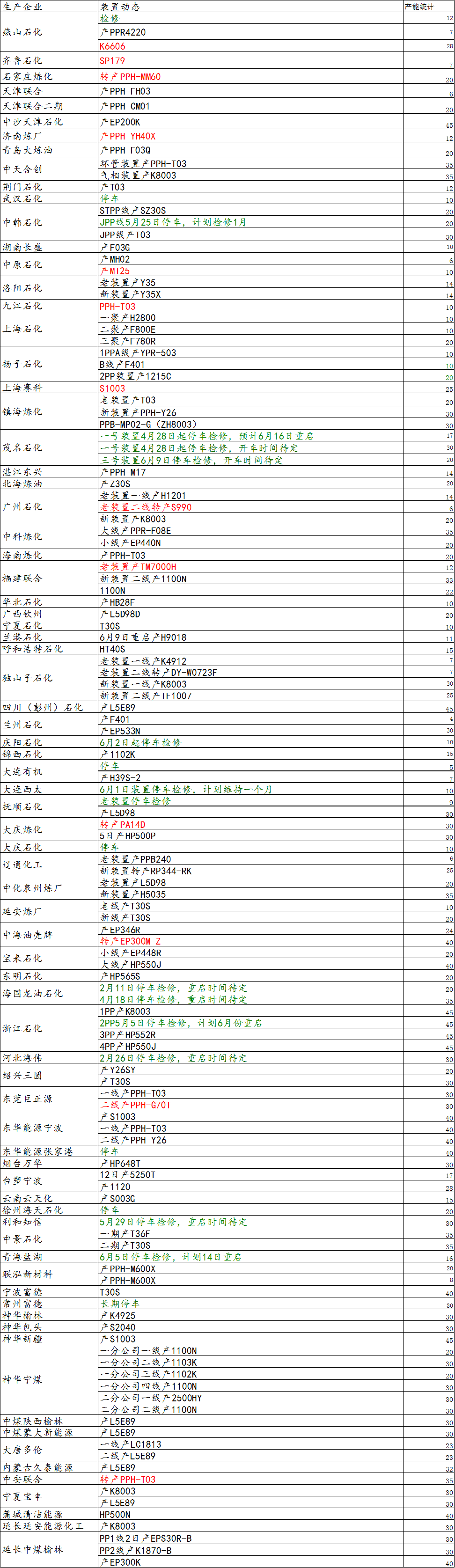 导读:6月14日国内装置动态