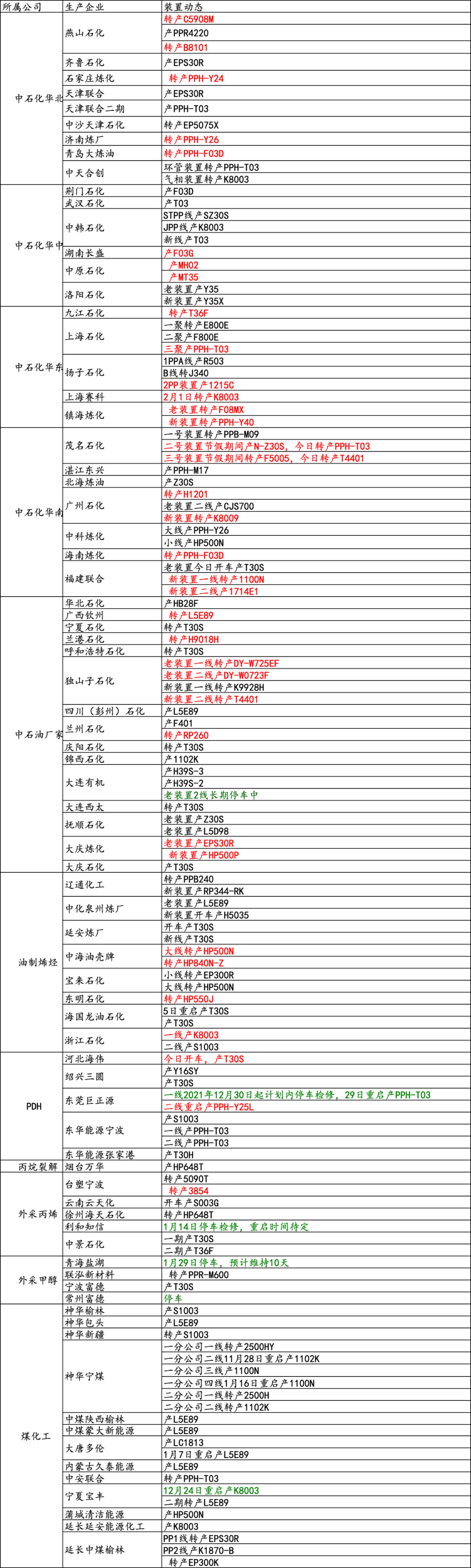 PP装置动态: