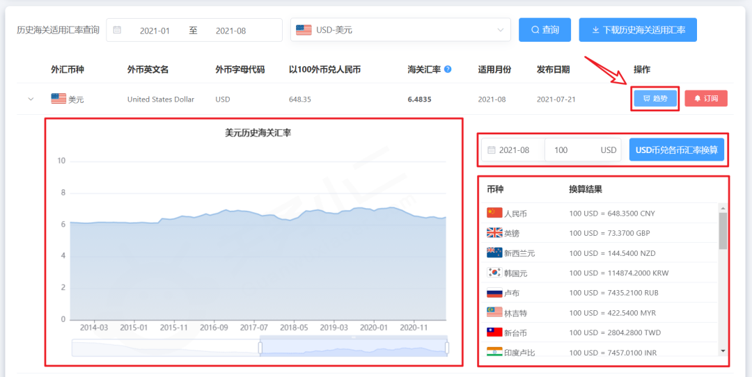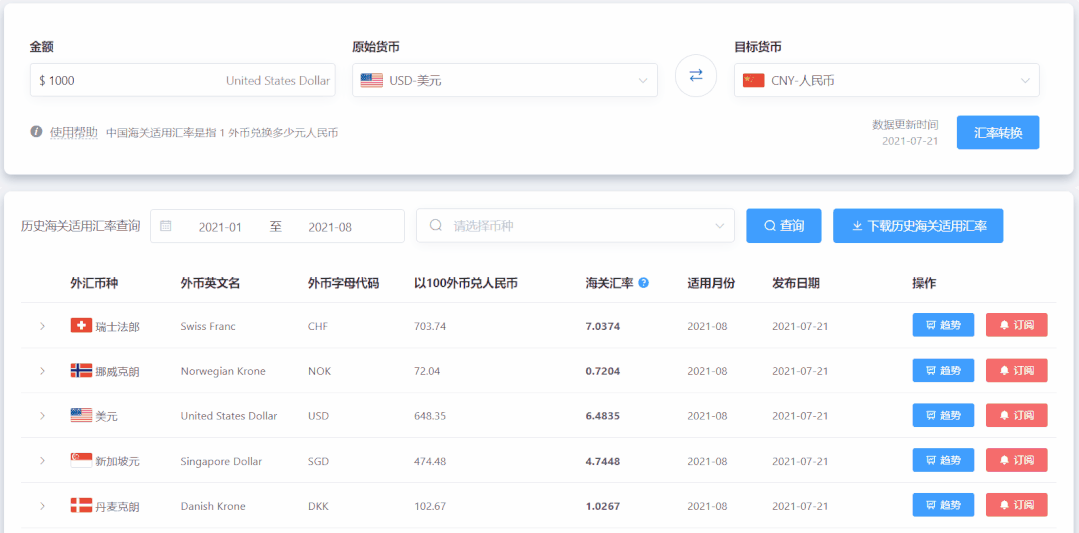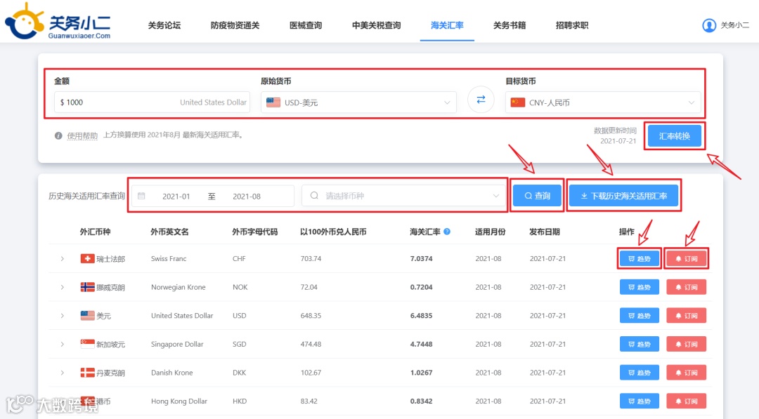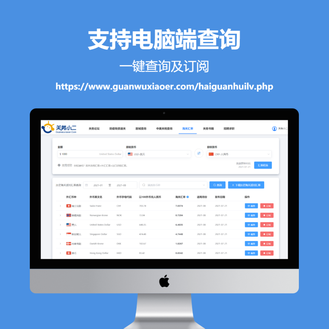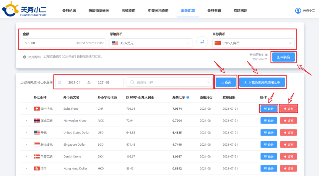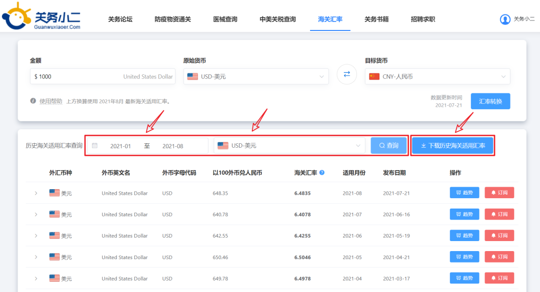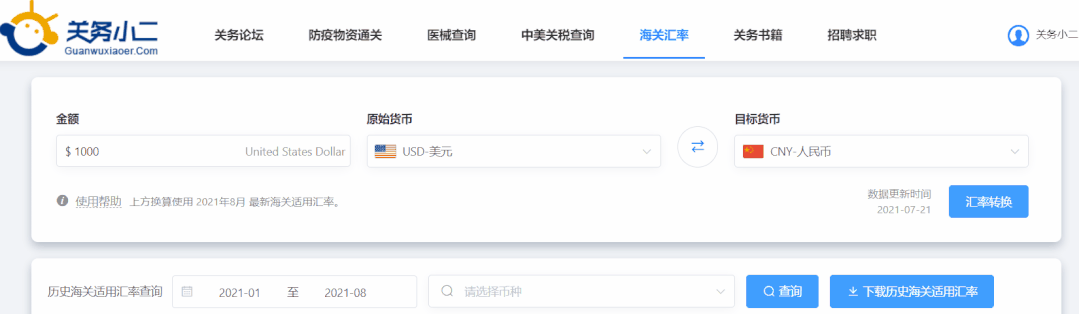 为了让贸易企业和关务人员更快捷获取海关适用汇率,方便企业进行贸易成本核算。关务小二开发了非常方便实用的海关适用汇率在线查询系统。