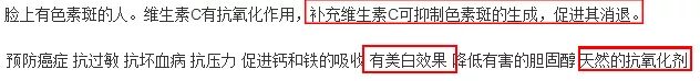 维他命c:能够淡化黑色素,补充肌肤营养,能够提亮肤色。