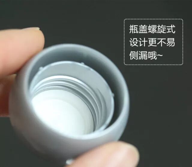 瓶盖内部为螺旋式,能防止瓶内水乳侧漏,随身携带,也不用担心会洒出来哦~