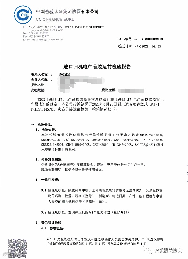 (四)、旧机电产品申报后系统会显示目的地查验,口岸放行后货物到达工厂,企业应及时与属地海关联系检验事宜,未经海关查验放行前,不能对包装进行开拆、使用及移作它用。