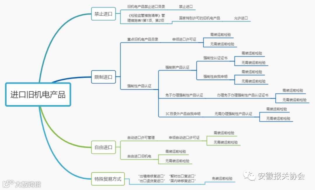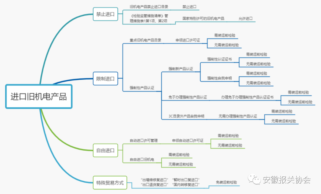 我们可以通过思维导图来直观的了解旧机电产品进口流程: