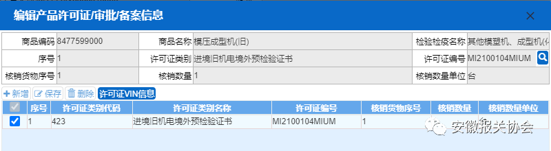 货主看到这里就行了,请直接下拉跳到第四部分。咱们开始报关行操作了:进口报关时需在单一窗口按要求填报装运前检验证书信息,在表体检验检疫项,产品资质栏依次填制许可证类别、许可证编号、核销货物序号、核销数量、核销数量单位向海关进行申报。如下: