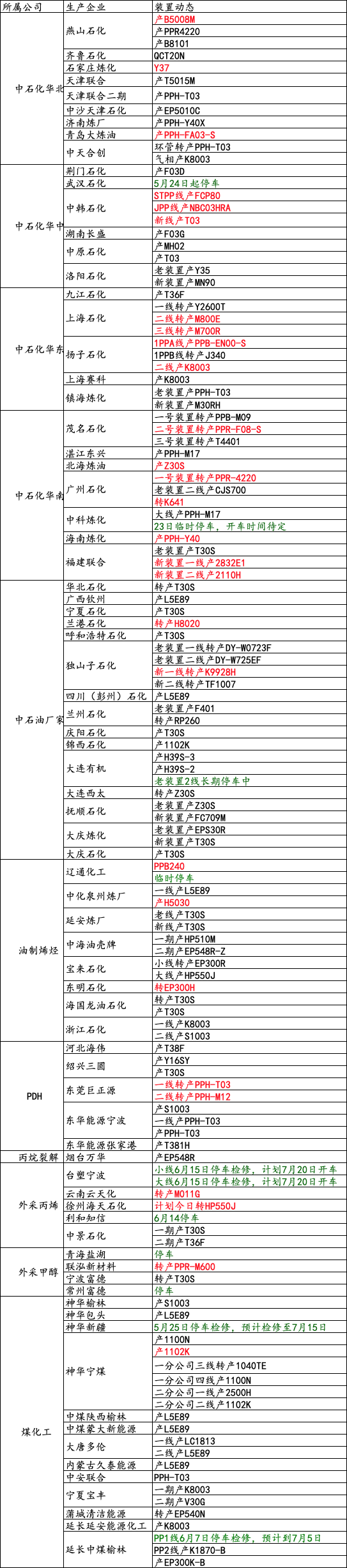 导读:6月28日国内装置动态