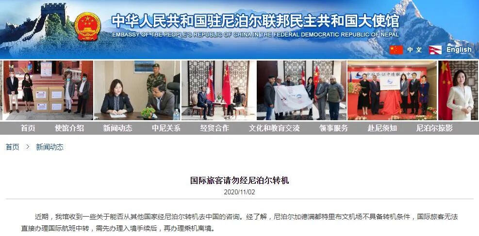 日前,中国驻瑞士、韩国、尼泊尔大使馆发布通知,提醒需经当地转机的外贸人,由于机场国际中转区暂无相关检测条件,建议从其他国家出发的旅客谨慎选择经瑞士、韩国、尼泊尔中转,以免行程遇阻。
