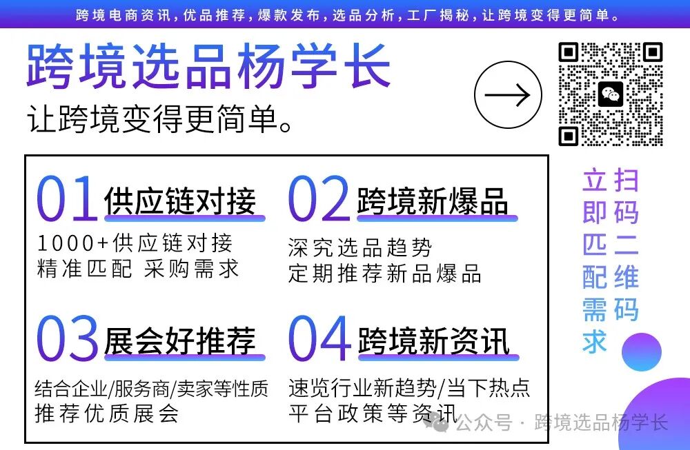 内容来源自网络,由跨境选品杨学长编辑整理汇总,其目的在于收集传播行业新闻资讯,杨学长不具备任何原创保护和所有权,也不对其真实性、可靠性承担任何法律责任,特此声明!