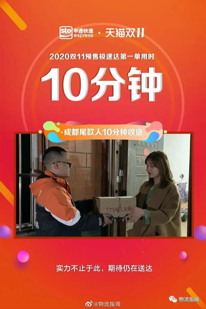 10分钟送达!申通完成天猫双11预售派送第一单。
