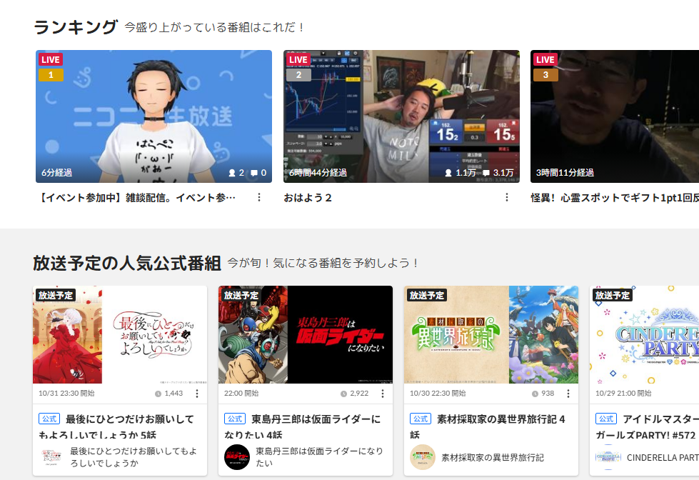 Niconico 它的诞生时间可以追溯到2006年,是一个非常有特色的视频平台。它的一个显著特点就是其弹幕评论功能,即观众可以在观看视频时,实时发表评论,这些评论会像字幕一样滚动在视频画面上,形成一种独特的观看体验。Niconico直播便是这一平台中的一个重要组成部分,开设了多种直播内容,满足了不同用户的需求。