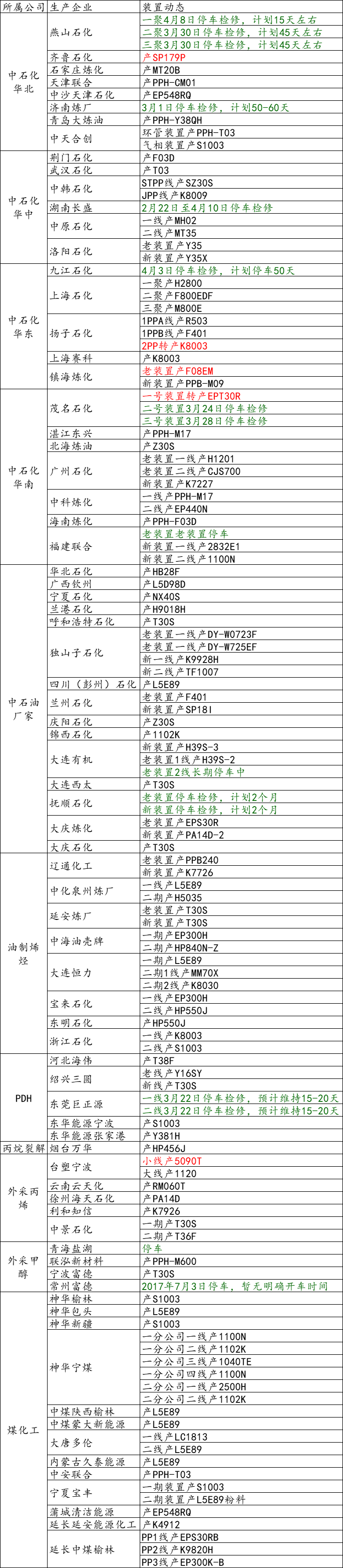 导读:4月13日国内装置动态