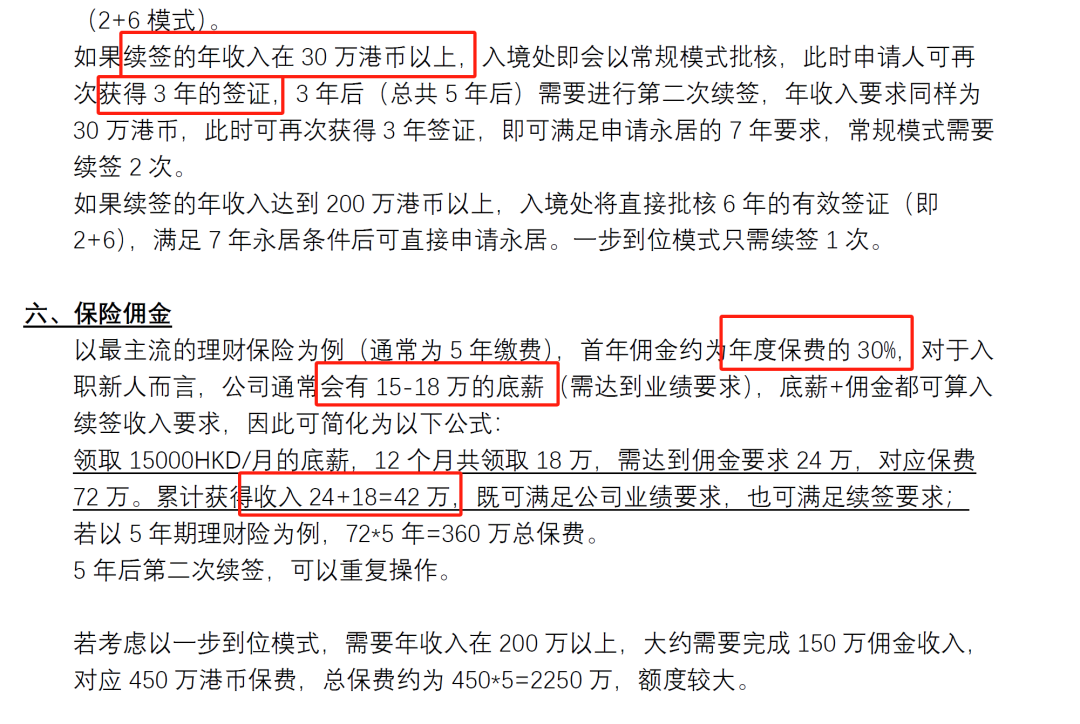 顺便说下,以上都是说香港保险代理人的佣金收入比例,而不是香港保险经纪人的佣金,香港保险经纪人的佣金比例更高,大约比代理人高一倍。如果你做保险经纪人,所需的业绩将大大降低。这份方案仅仅用于保险代理人拉人头用途,并不会告诉你,还有其他的保险收入渠道(如保险经纪人或银行保险渠道)。