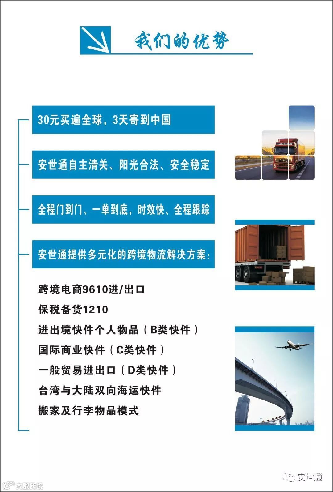 ②待清关手续完成后,当天会进入国内落地配环节,客人可以在家等待安世通将分运行李送至您的家中,当您签收核验快件包裹之后,所有流程结束!