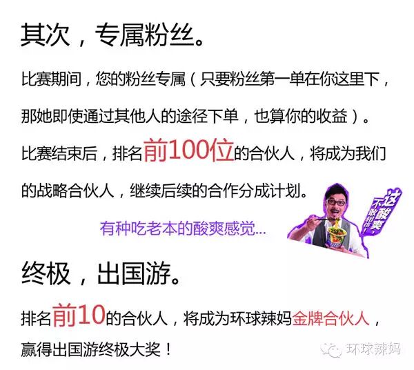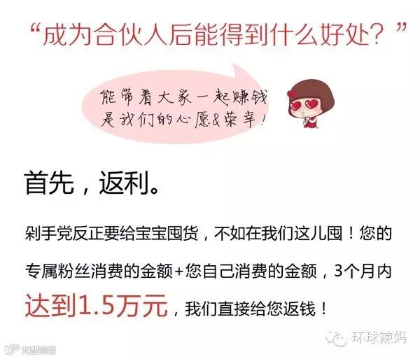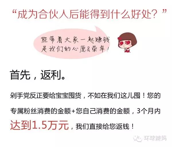 第一步 参赛者通过扫描环球辣妈二维码加关注,进入主页面,在主页面下方菜单,点击“合伙人”。