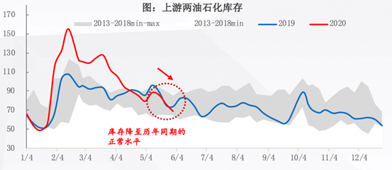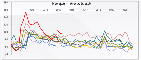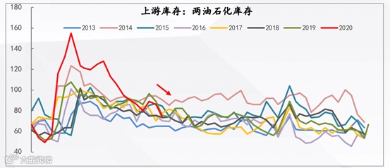-- 上游石化库存已经降至历年同期的正常水平,社会库存低于去年同期水平,库存绝对数额压力不大;